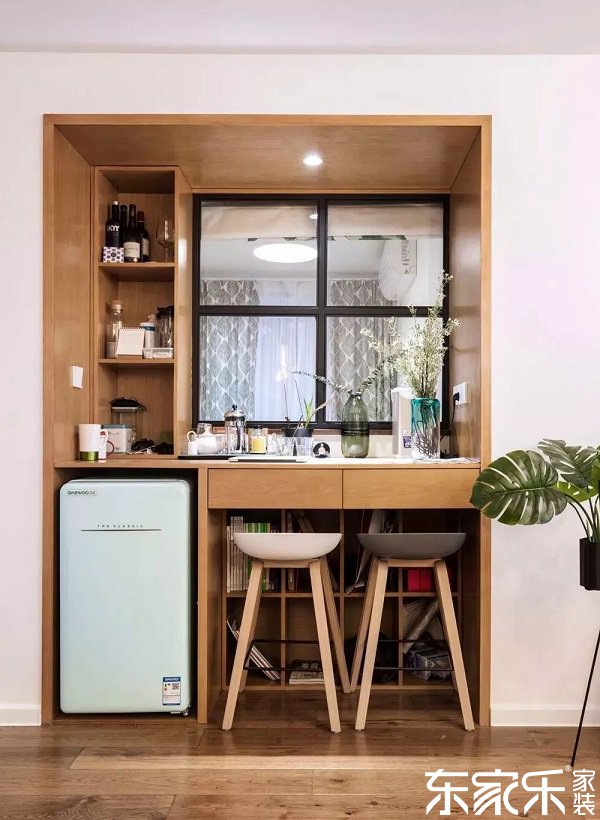 雖說裝修時選擇的裝修風格可能一樣,但裝修后的裝修效果卻各有不同,有的效果圖讓人感覺詮釋了該風格該有的效果,而有的效果圖卻讓人感覺耳目一新,似是而非的感覺卻又出奇的讓人滿意。今天東家樂小編就來給大家分享一套80平米現代風格裝修效果圖,電視背景墻邊鏤空區做成小吧臺真有個性!