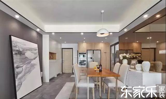 剛需房改造,進(jìn)門就是餐廳,同樣顏值很高,進(jìn)門不做任何遮擋,現(xiàn)代風(fēng)的搭配非常清爽。